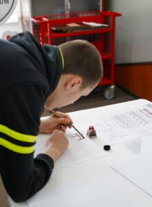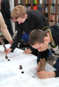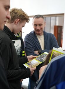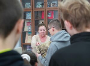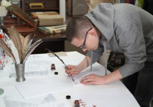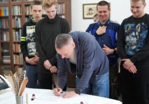 Młodzież z wielkim zainteresowaniem oglądała stare księgi, pisała gęsim piórem i układała puzzle przedstawiające budynek naszego archiwum. Pokazaliśmy również magazyny archiwalne, w których